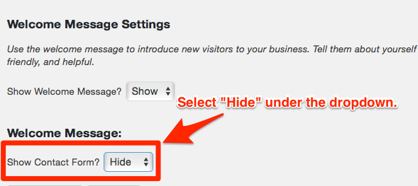You select “Hide” for the Show Contact Form question under Structure & Style>Home Page>Welcome Message section.